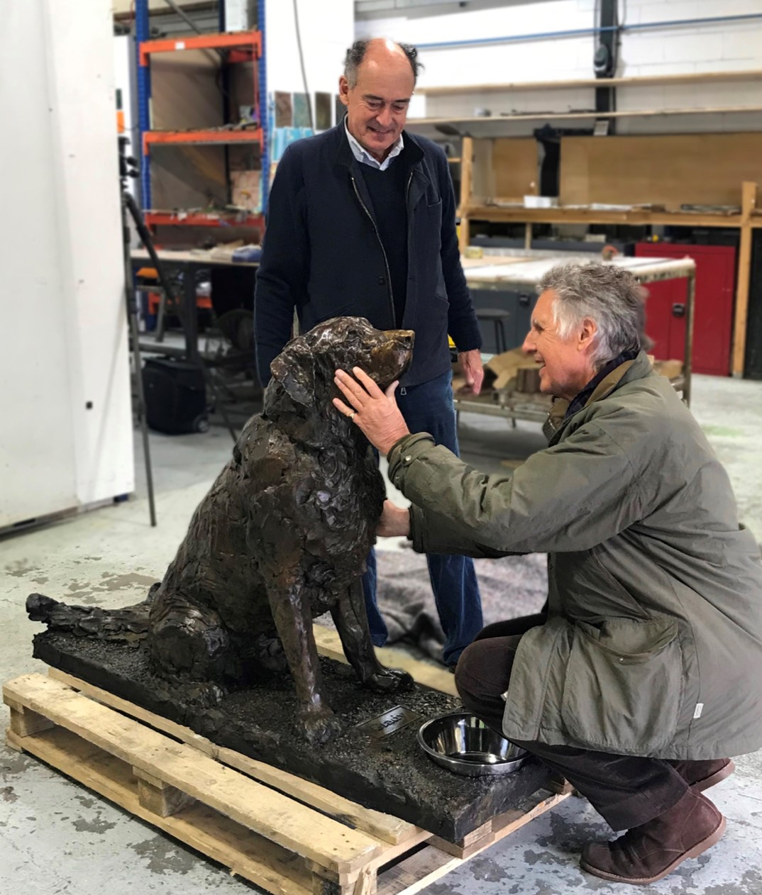 (caption: Jeremy Cassel remembers Grady with sculptor, Mark Coreth, looking on)