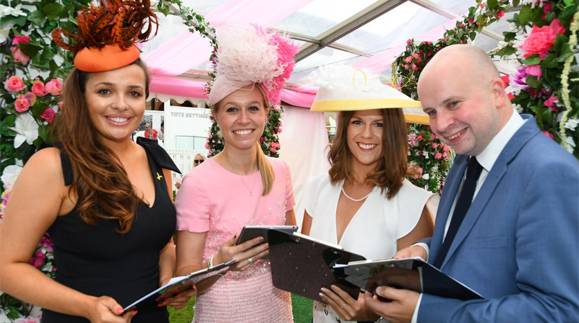 York's partner milliner George Durdy (second left) shares her top tips for catching the judges eye at the Ebor Fashion Lawn.